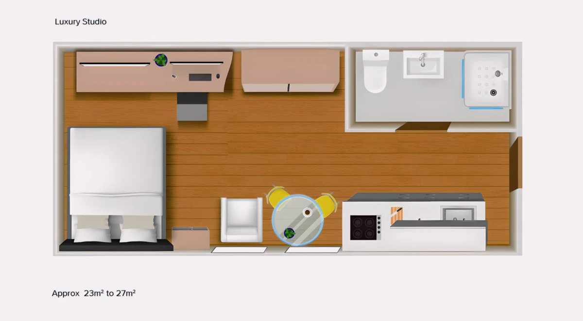 The building offers 5-6 person ensuite suites and fully self-contained studio rooms that are luxuriously, tastefully decorated, and fully furnished. With all the amenities students need and more recreational facilities, including a sauna, gym, glass-walled sky lounge, two dinner party rooms, study area, roof terrace and cinema room, it's ideal for Durham students.