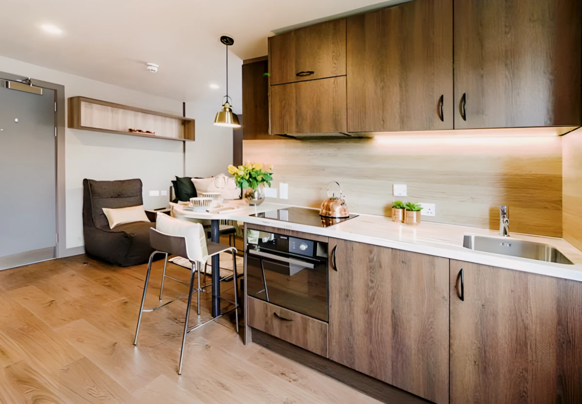 Ernest Place is the epitome of luxury student accommodation in Durham. Located in the heart of Durham's Gilegate area, the student apartment is ideal for students who want to enjoy the luxury of living near the city centre and the Durham University city centre. Unique ensuite room types and studio room types will ensure your university experience is unforgettable. Stylish living spaces and bold, spacious social areas - the flats boast sophisticated style and contemporary design. With a secure security system and 24/7 help, you'll find an unrivalled student living experience in the heart of Durham's city centre.