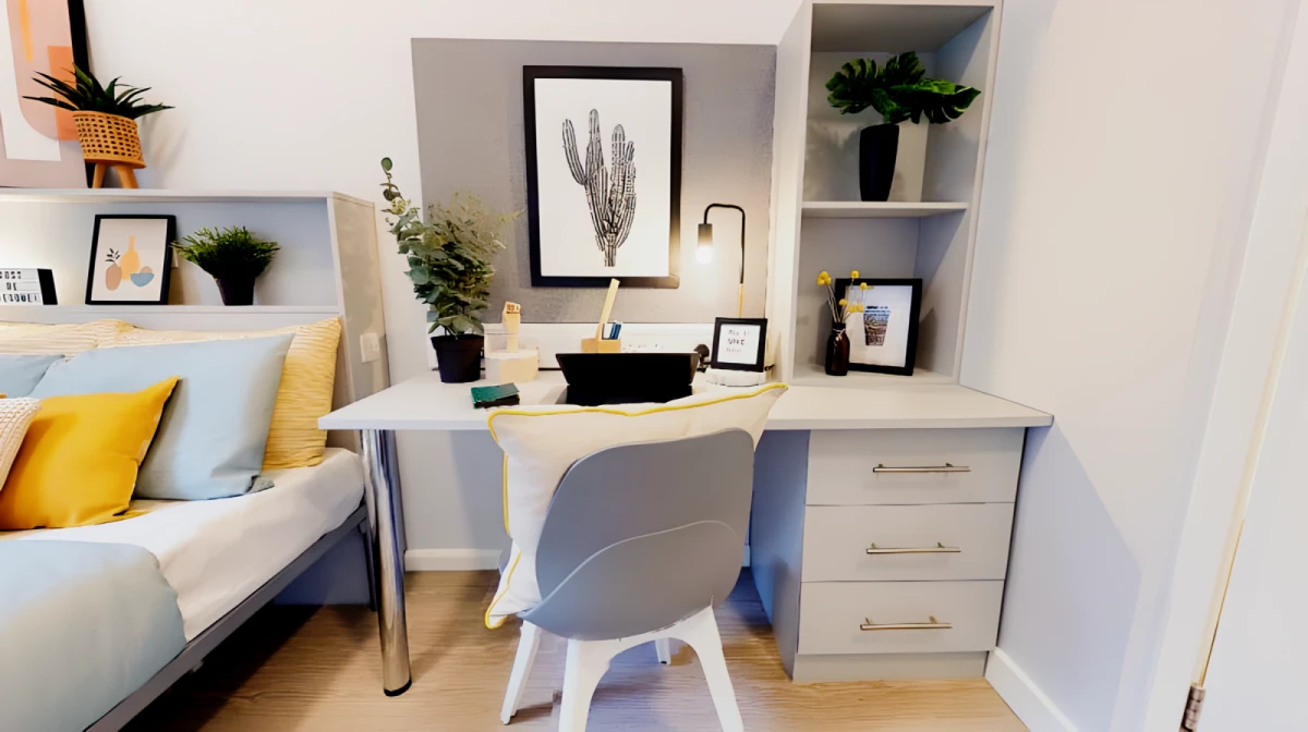 Will Wyatt Court iQ student accommodation in London has various design-led En-suites of Bronze, Silver, Gold, and Platinum levels to fulfil your diverse needs. Each room is fully furnished with a small or normal double bed with under-bed storage, a study area with USB charging points, and a shared kitchen and living area. iQ Will Wyatt Court, London, features: