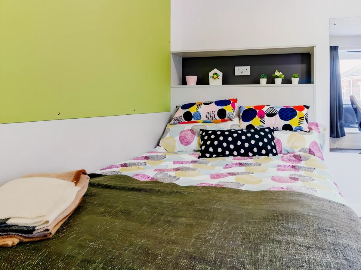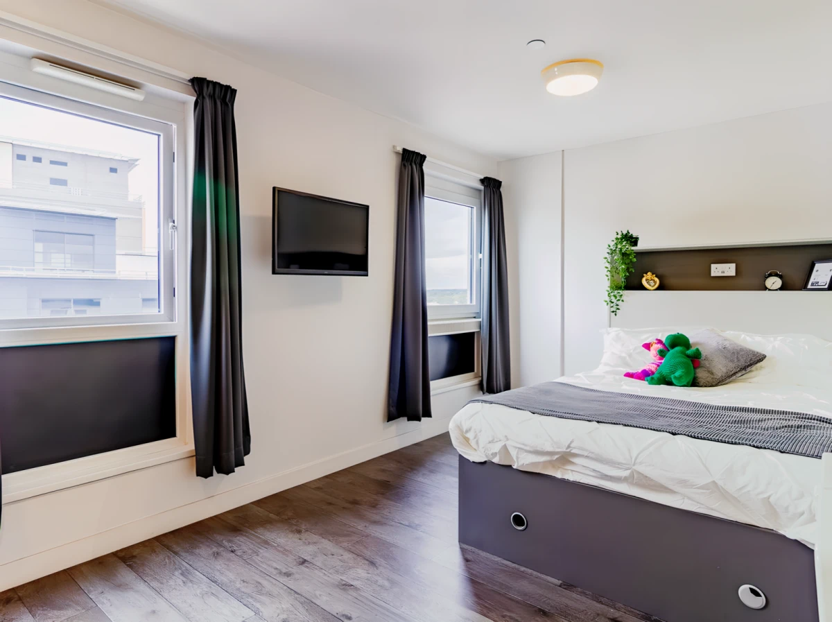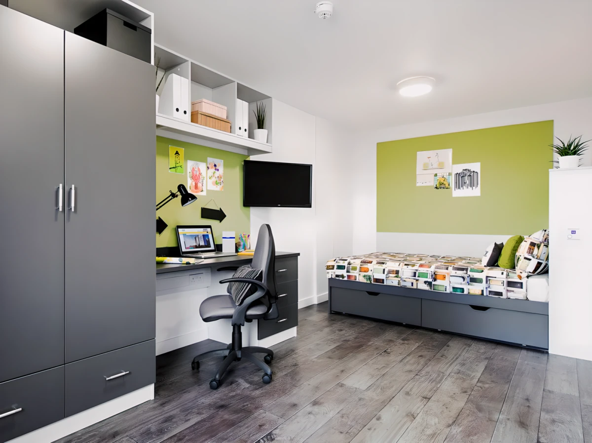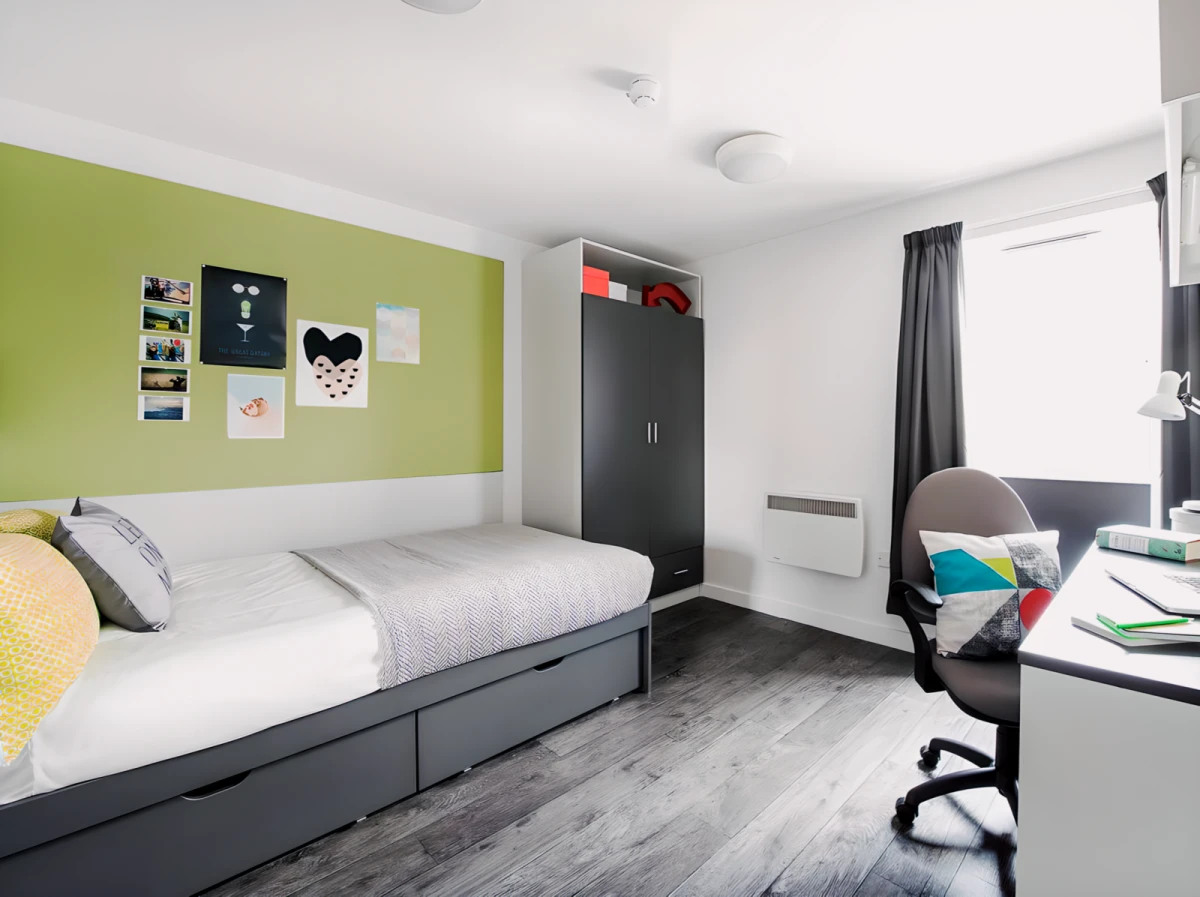 Crescent Place offers 467 beds in studios, en-suite and non-en-suite rooms. You can choose from Classic Studio, Premium Studio, Deluxe Studio, Classic En-Suite, Standard En-suite Plus, Standard En-Suite, 8-bed Classic shared houses and 6-bed Classic shared houses. The rooms are furnished with a comfortable bed, a desk, a chair, etc. The kitchens are equipped with a fridge, microwave and oven, making it easy to move in as a handbag.