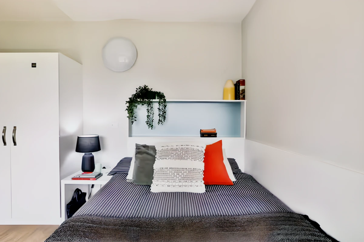 Foss Studios features modern studios for students who are looking for self-contained rooms or private space with your partner. Designed for living comfort, Foss Studios offers fully furnished studios with double beds, roomy study areas with desks, chairs and bookshelves, high-quality kitchen areas with cooking essentials, and private ensuite bathrooms with individual showers. The communal space features an on-site gym and a cinema, so whether students would like to keep fit or have fantastic movie nights with friends, you can enjoy it in Foss Studios free of charge, nor go outside. The property has an outside area for relaxation, and the accommodation team will manage regular activities such as cooking nights or festival gatherings for residents to meet each other and talk with friends.